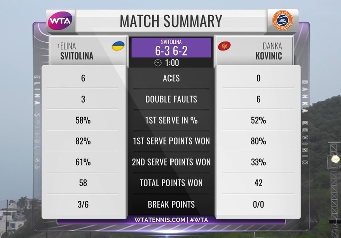 Еліна Світоліна (Україна) - Данка Ковініч (Чорногорія) - 6:3, 6:2