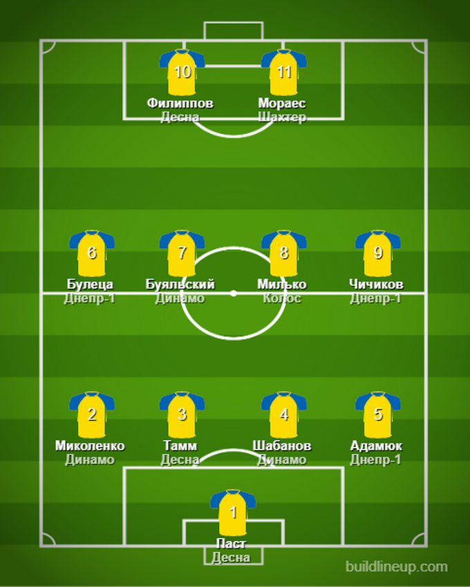 Олександр Філіппов («Десна»). Чернігівський клуб продовжує боротися за срібні медалі чемпіонату України, і перемога над прямим конкурентом — «Зорею» — на вагу золота. А домогтися її «Десна» змогла завдяки єдиному м'ячу 27-річного українського форварда Олександра Філіппова, який він забив на 38-й хвилині зустрічі після передачі екс-гравця «Зорі» Будківського.