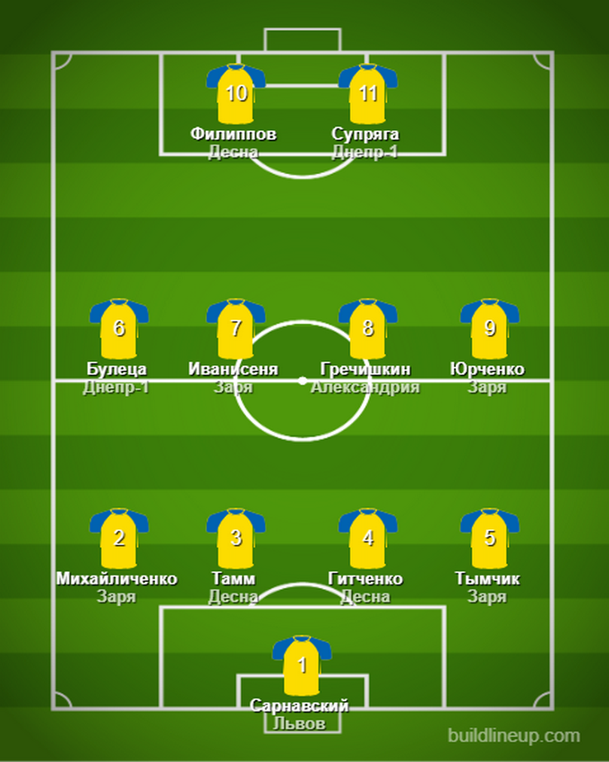Олександр Філіппов («Десна»). 27-річний український нападник закріпився на другій сходинці в списку кращих бомбардирів УПЛ, забивши свій 13-й м'яч у турнірі в матчі з «Динамо». Гол примітний тим, що він приніс «Десні» нічию у виїзному поєдинку з киянами (1:1). На 80-й хвилині зустрічі Філіппов скористався помилкою Караваєва, на швидкості обіграв Бущана і чітко відправив м'яч у порожні ворота.