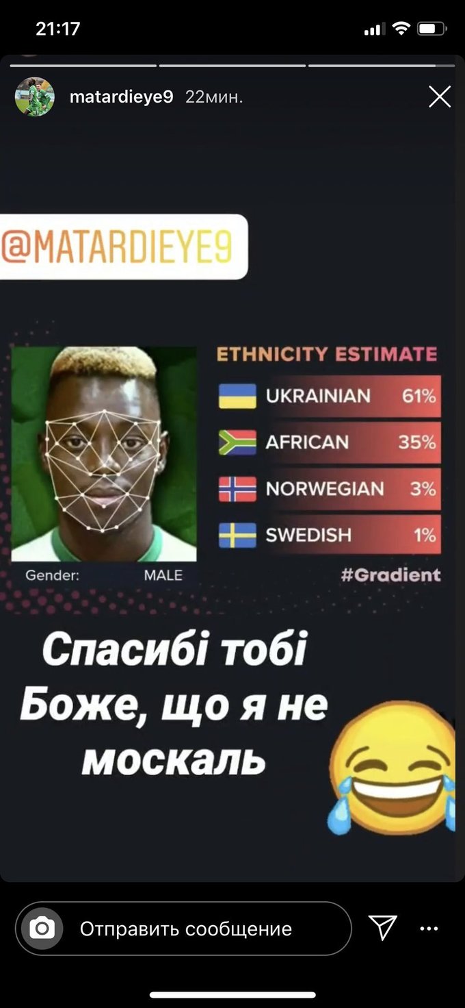 Сенегальський футболіст «Карпат» Матар Дійе, права на якого належать донецькому «Олімпіку», яскраво пожартував щодо результату в новому додатку Gradient.