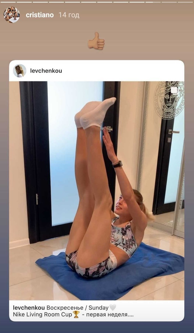 Зоряний португальський футболіст Кріштіану Роналду позначив в сторіс інстаграму виконання українською легкоатлеткою Юлією Левченко його челенджу під назвою «Nike Living Room Cup».