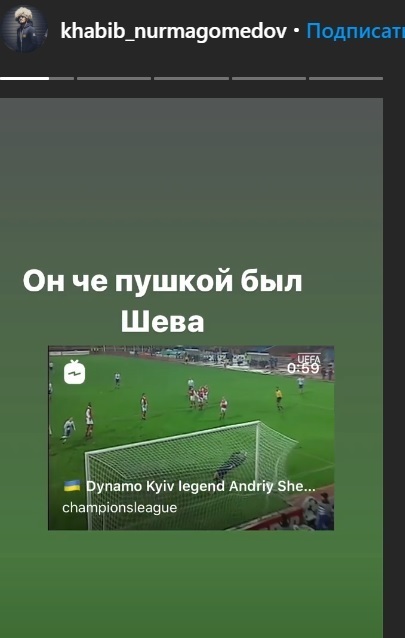 Чемпіон UFC у легкій вазі Хабіб Нурмагомедов згадав гру зіркового футболіста минулого Андрія Шевченка.