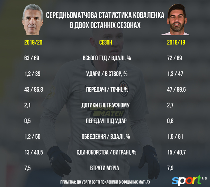 При цьому, переважна більшість ігрових показників Коваленка в поточному сезоні також покотилися вниз. Досить поглянути на ключову статистику хавбека в останньому сезоні в «Шахтарі» Фонсеки і в першому - для Каштру, щоб зрозуміти, наскільки навіть не варто заїкатися про ймовірний прогрес гравця за останній рік. Його просто немає, тому як Коваленко, не маючи регулярної ігрової практики, не тільки не розвивається, а й, схоже, почав деградувати...