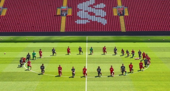 Гравці «Ліверпуля» перед тренуванням встали на одно коліно в пам'ять про загиблого в США афроамериканця Джорджа Флойда, який помер після застосування сили поліцейського.