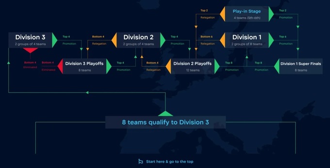 Другий дивізіон складається з двох груп по чотири команди, зібраних шляхом відкритих кваліфікацій. Призовий фонд цієї сітки складе $ 10 000 для американського регіону та $ 15 000 для азіатського.