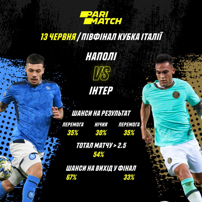 «Ювентус» прийме «Мілан» 12-го червня, «Наполі» зіграє з «Інтером» - 13-го. Хто б не пройшов у фінал, це будуть гідні команди. Правда, вже зараз можна спрогнозувати, що згідно з даними Parimatch трофей розіграють «Ювентус» і «Наполі».