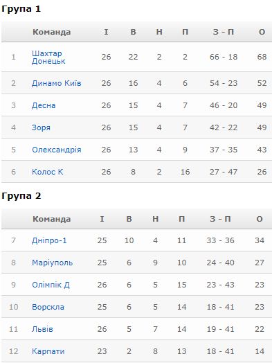 Турнірна таблиця УПЛ після 26 турів