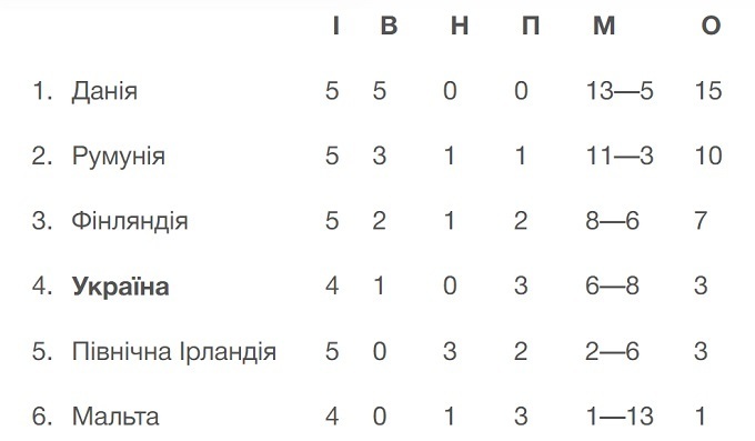 Турнірне становище у відбірковій групі 8: