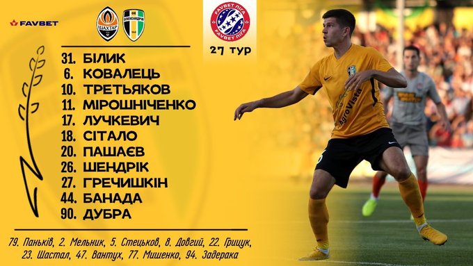 Запас: Паньків, Мельник, Стецьков, Довгий, Грицук, Шастал, Вантух, Мишенко, Задерака.
