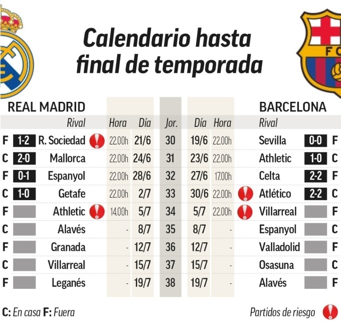 Залишилося грати всього нічого, і іспанські журналісти проаналізували календар матчів, що залишилися у двох претендентів на титул.