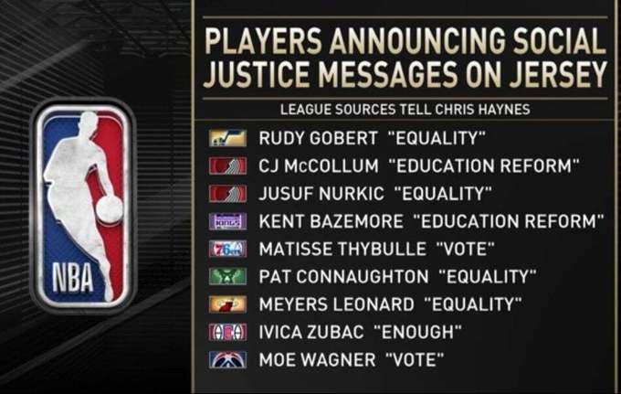 30 липня буде відновлено регулярний чемпіонат НБА. Під час догравання сезону на майках баскетболістів можуть нанести різні заяви.