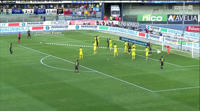 Чому я згадав цю історію? Справа в тому, що його перший гол у чорно-білій формі цілком міг залетіти зі штрафного. П'ятиразовий володар «Золотого м'яча» прошив дев'ять футболістів «К'єво», і тільки Стефано Соррентіно завадив снаряду залетіти в ворота. Незабаром він же стане першим воротарем, який відіб'є пенальті Роналду.