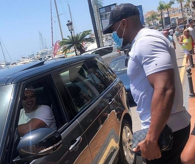 У своїх соцмережах британські боксери Ентоні Джошуа і Тайсон Ф'юрі виклали фото нібито випадкової зустрічі, яка відбулася в Іспанії, де обидва спортсмени проводять відпустку.