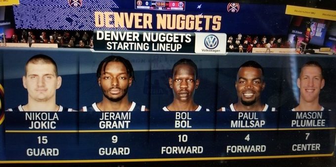 Всі п'ять гравців стартової п'ятірки - центрові або потужні форварди. Найнижчий в старті - Джером Грант (203 см). Відзначимо, що захисниками вказані Грант і центровий Нікола Йокіч (211 см). Також в старті Пол Міллсеп (203), Мейсон Пламлі (211) і Бол Бол (218).