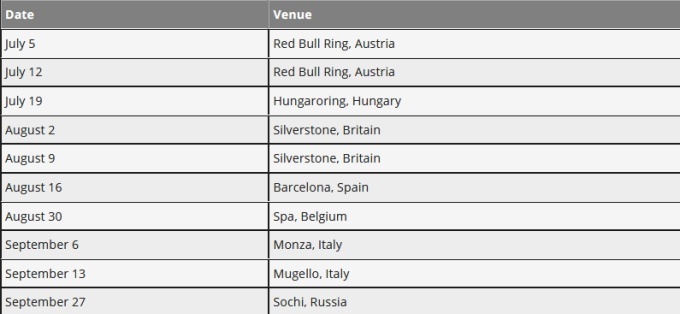 Разом цього серія має намір додати ще три гонки в Європі: в Німеччині (Нюрбургринг), Португалії (Портімао) і Італії (Імола).