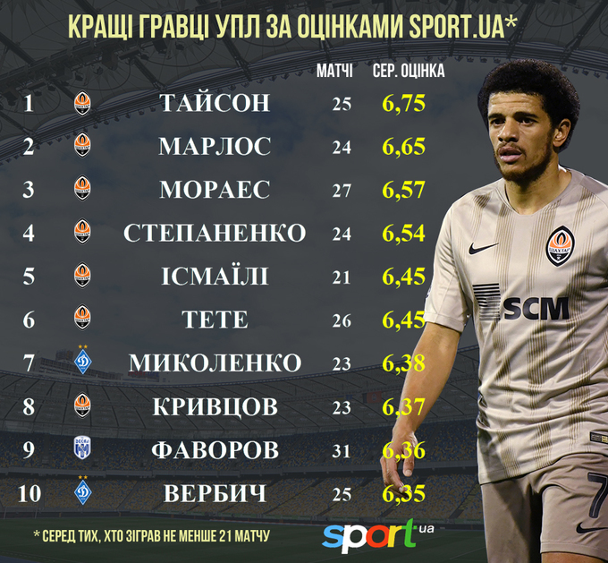 Тайсон - найкращий футболіст УПЛ-2019/20 за оцінками Sport.ua