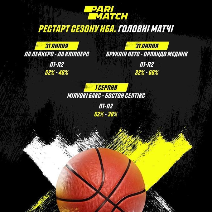 Відзначився «Бруклін»: втративши перед рестартом половину складу, «Нетс» відкопали 40-річного Джамала Кроуфорда, який після завершення кар'єри Вінсом Картером, став єдиним гравцем ліги, який виступав у НБА в минулому сторіччі. «Нетс» свій перший матч зіграють проти номінальних господарів «Діснейворлда» «Орландо». «Меджік», які підходять до рестарту без видимих втрат, на думку аналітиків Parimatch, є основними претендентами на перемогу у матчі проти знекровлених «Нетс», і фора -5.5 на «чаклунів» за 1.80 виглядає вельми привабливою.
