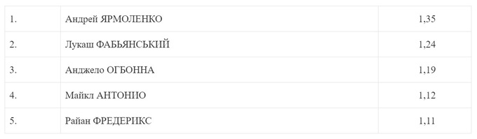 Відзначимо, що до рейтингу потрапили ті гравці, які провели не менше половини поєдинків.