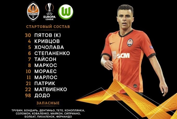 Сьогодні о 19:55 стартує матч-відповідь 1/8 Ліги Європи «Шахтар» - «Вольфсбург». Став відомий стартовий склад команди Луїша Каштру.
