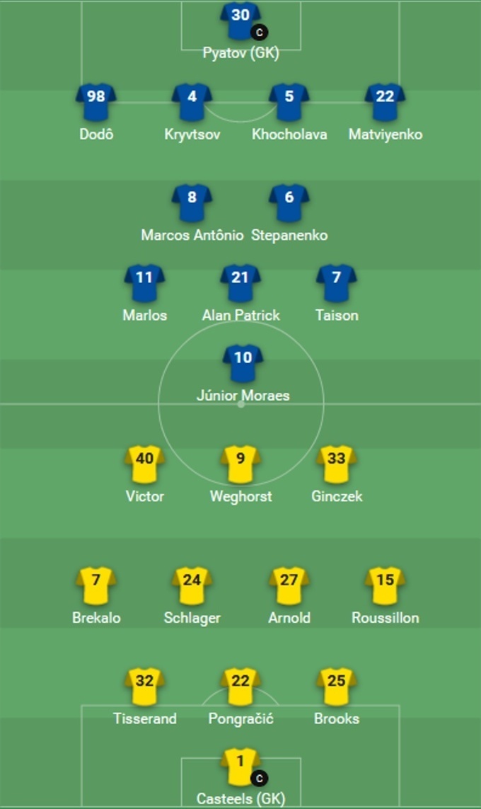 В запасі: Трубін, Бондар, Пихальонок, Фернандо, Болбат, Маркіньос, Коваленко, Соломон, Коноплянка, Тете, Дентіньо