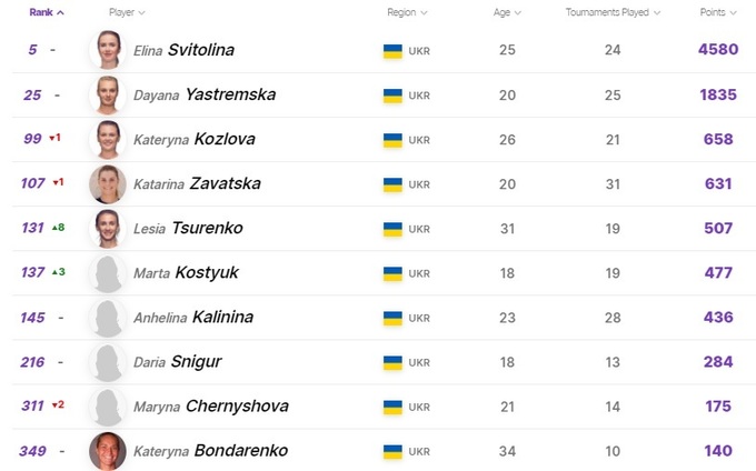 Після чергового тижня своє становище поліпшили українки Леся Цуренко і Марта Костюк. Леся піднялася на 8 позицій і тепер займає 131-й рядок. А Марта Костюк піднялася на три місця і тепер розташувалася на 137-му.