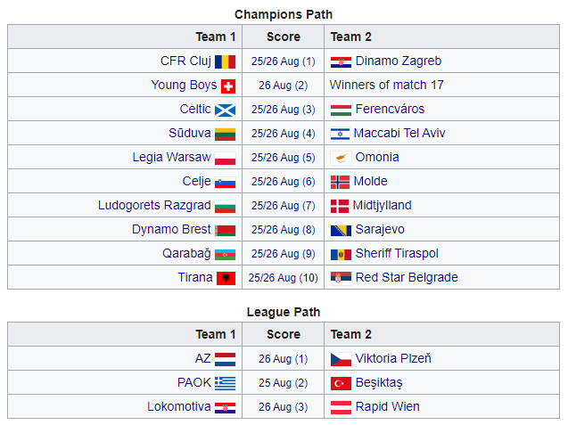 - Клаксвік (Фарерські острови) – Слован Бр (Словаччина) – матч перенесений через коронавірус на 21.08