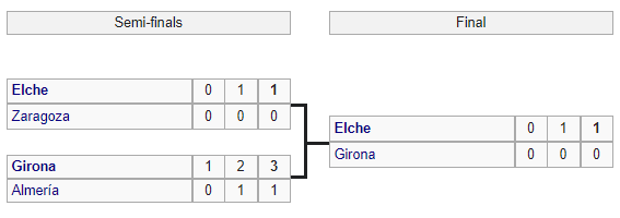 Команди грали останню путівку в Ла Лігу. «Ельче» і «Жирона» провели фінальне протистояння з двох матчів.
