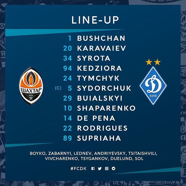 «Динамо»: Бущан, Тимчик, Кендзьора, Сирота, Караваєв, Сидорчук, Буяльський, Шапаренко, Родрігес, Супряга, Де Пена.