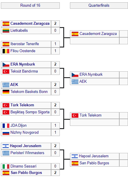 Відомо тільки 6 з 8 учасників фіналу восьми: АЕК (Греція), «Сарагоса» і «Бургос» (Іспанія), «Німбурк» (Чехія), «Хапоель» Єрусалим (Ізраїль) і «Тюрк Телеком» (Туреччина).