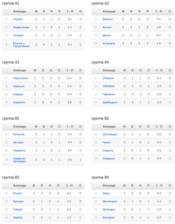 Збірна України в своїй групі посідає 2-ге місце (3 очки з 6) після іспанців.