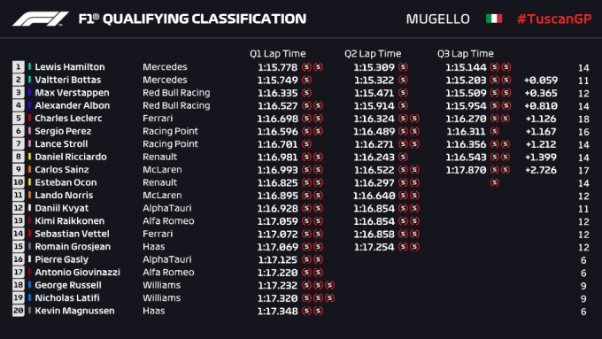 Втім, перемога в кваліфікації знову залишилася за Мерседесом. Льюїс Хемілтон випередив Валттері Боттаса, а другий ряд з досить невеликим відставанням зайняли пілоти Ред Булла.