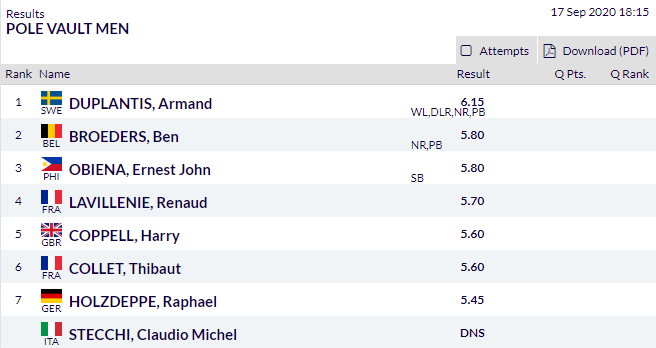 Швед стрибнув на 6.15, а в лютому він двічі оновив рекорд в приміщенні