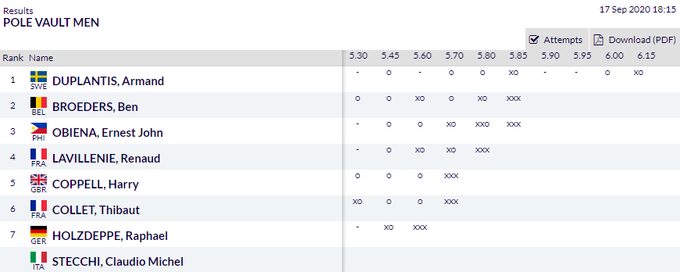 Duplantis also owns the overall world record with his 6.18m indoors earlier this year. pic.twitter.com/3uWp3liD6z