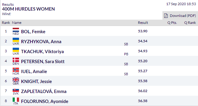 1. Фемке Бол (Нідерланди) – 53,90