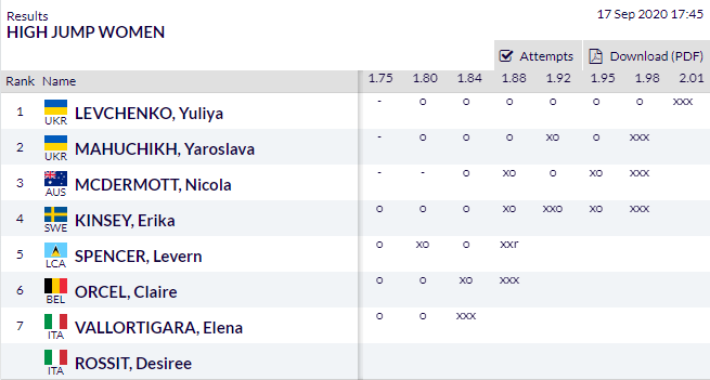 Українці підкорилася висота 1.98 метра, а ось планка на позначці 2.01 м після її стрибків не встояла. Друге місце посіла Ярослава Магучіх (1.95 м).
