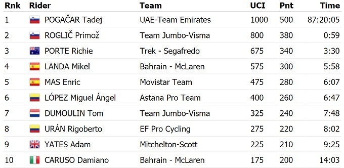 Заключний етап виграв ірландець Сем Беннетт з «Deceuninck Quick Step», який також завоював зелену майку найкращого спринтера.
