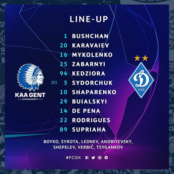 Гент – Динамо. Яремчук, Безус і Пластун проти киян. Стартові склади