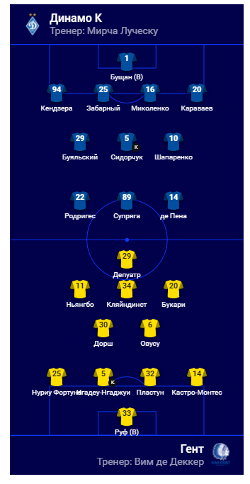 Динамо – Гент. Пластун зіграє в Києві. Стартові склади команд