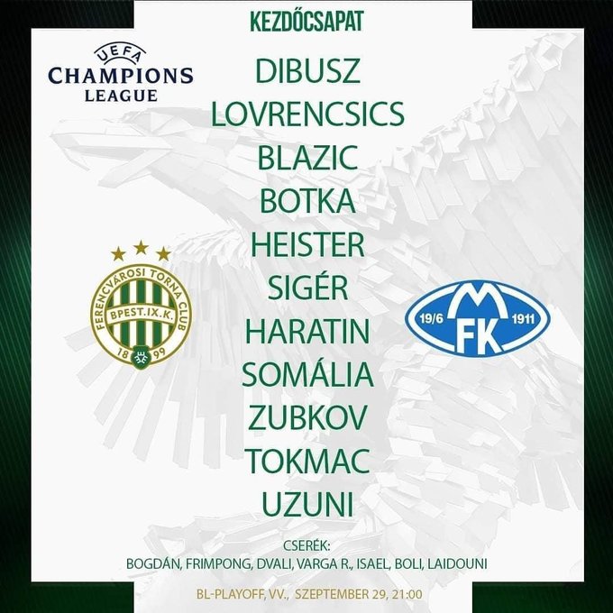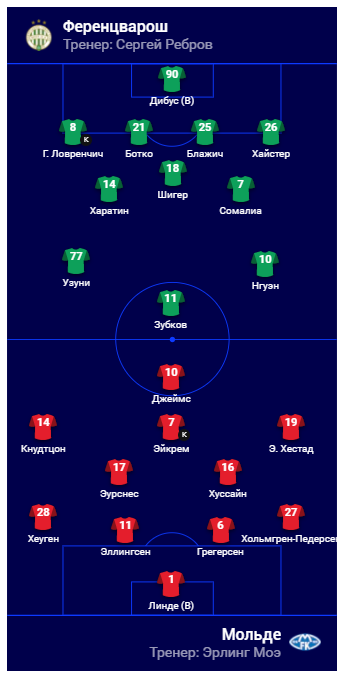 Ференцварош – Мольде. Вибір Реброва: Зубков і Харатін у стартовому складі