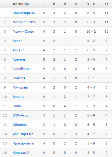 У турнірі після 5 турів лідирують «Чорноморець» та «Металіст 1925», які набрали по 11 очок з 15 можливих.