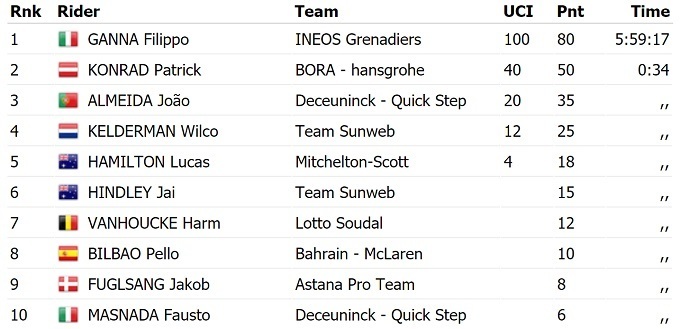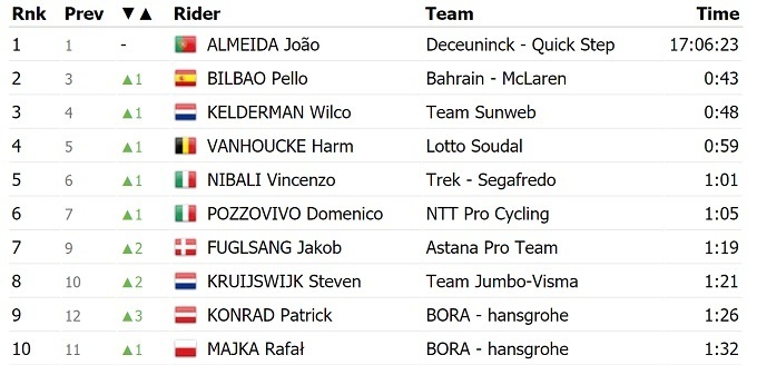 Лідерство в загальному заліку зберіг португалець Жоау Алмейда з команди «Deceuninck Quick Step».