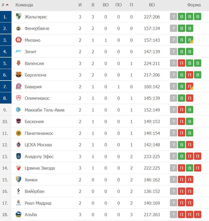 «Жальгіріс» здобув третю перемогу в Євролізі. Цього разу литовський клуб обіграв «Црвену Звезду» і вийшов на перше місце в турнірній таблиці. В іншому матчі «Барселона» обіграла «Валенсію», українець Артем Пустовий не потрапив до заявки.