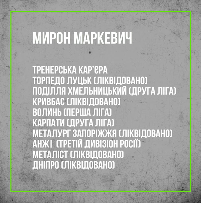 Ви подивіться у Вікіпедії на послужний список клубів, в яких працював Мирон Богданович. І де ці клуби зараз? Навіть російський «Анжі» не в найкращій ситуації. Це, звичайно, лірика, але я б хотів заспокоїти Мирона Богдановича. Все буде добре з «Карпатами». З іншого боку, я радий, що Маркевич і «Рух» встиг потренувати (сміється)».