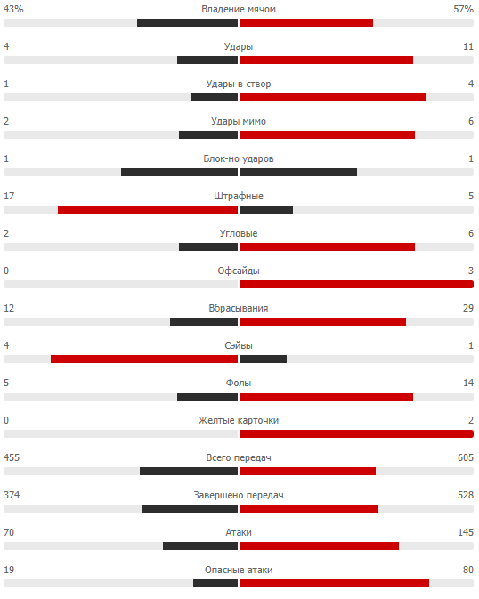 Господарі поля рідше пробивали по воротах (4–11) та у створ (1–4). Також італійська команда частіше володіла м'ячем (57%).
