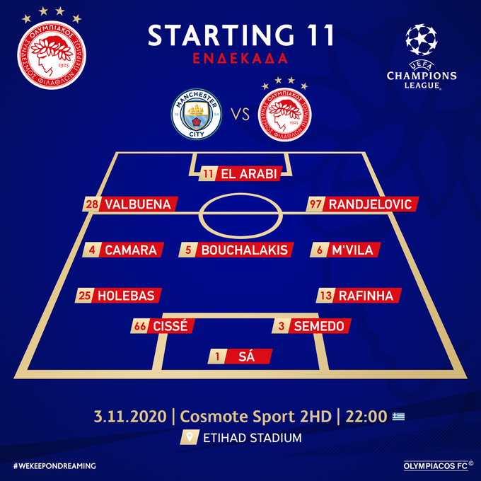 Сьогодні, 3 листопада, в матчі 3-го туру Ліги чемпіонів «Манчестер Сіті» приймає «Олімпіакос».