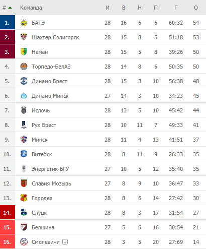 Солігорська команда набрала 53 очки і відстає на один бал від БАТЕ. До кінця турніру залишилося 2 тури.