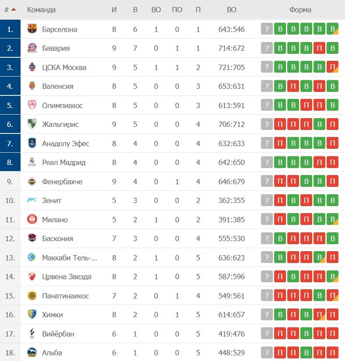 Євроліга, 9-й тур