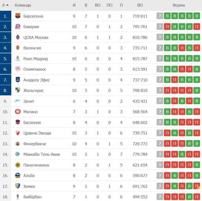 Євроліга, 10-й тур
