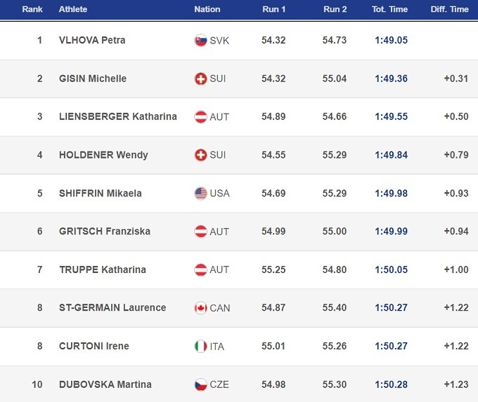 Словацька гірськолижниця Петра Влхова зробила переможний дубль у слаломі на етапі Кубка світу у фінському Леві. Вона випередила швейцарку Мішель Гізін і австрійку Катаріну Лінсбергер. Мікаела Шиффрін лише замкнула топ-5.