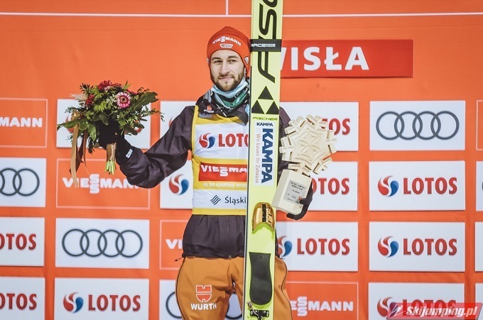 Наприклад, це стосується Маркуса Айзенбіхлера. В кінці жовтня він переміг на чемпіонаті Німеччини, випередивши найближчого переслідувача на цілих 18 балів. І до старту Кубка світу він підійшов у блискучій формі. У неділю німець здобув свою другу перемогу в кар'єрі на Кубку світу, і в цілому протягом усього вік-енду Айзнбіхлер був дуже сильним. З усіх його стрибків на етапі у Віслі, включаючи тренувальні, не було жодного невдалого - дивовижна для Маркуса стабільність, яка дозволяє назвати цей етап найкращим в його кар'єрі. Перед початком сезону ми говорили про те, що через свою нестабільність Айзенбіхлер навряд чи побореться за загальний залік Кубка світу, але якщо він продовжить в такому ж дусі, то стане дуже серйозним претендентом на Великий кришталевий глобус (ВКГ). Насторожує лише те, що Маркус, очевидно, знаходиться в топовій формі ще з кінця жовтня, і спад у нього може наступити досить рано.